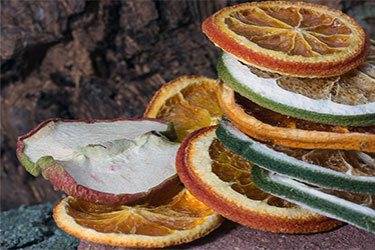 Уже менее калорийные сухофрукты – сушеный апельсин. В нем около 301 ккал. Высушить апельсины можно и дома: в духовке, электросушилке и даже на батарее – зимой, а летом – на солнечном подоконнике или на балконе. Сушат их обычно, нарезая кружочками, вместе с кожурой, повышающей бактерицидные свойства фрукта. Потребление сушёных апельсинов улучшает работу мозга и ЖКТ, повышает тонус и придаёт сил.